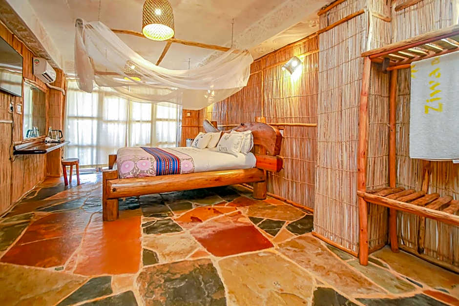 A bed in a functionally furnished dormitory room. A locker is provided for each guest. The bathroom is located in the dormitory and shared among everyone staying there. This room provides direct access to the river view balcony.